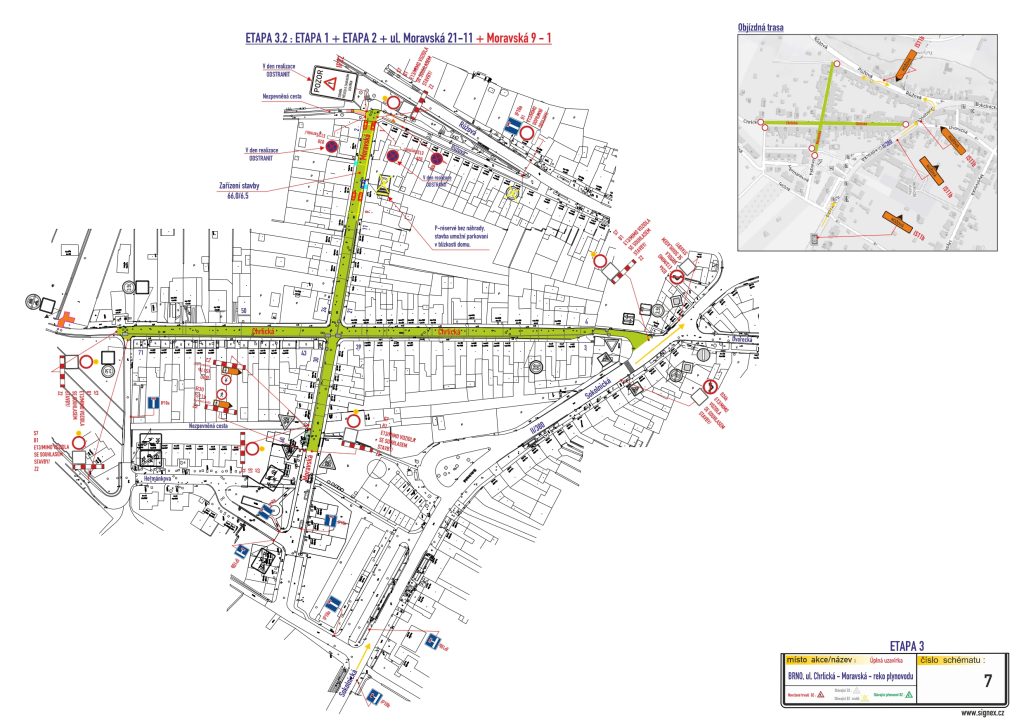 Etapa 3.2. od do 7. 7. – 15. 8. 2025 – ul. Chrlická 71-43 + ul. Moravská 30-40 + ul. Chrlická 39-31 + ul. Chrlická 29-15 + ul. Chrlická 13-3 + ul. Moravská 21-11 + ul. Moravská 9-1