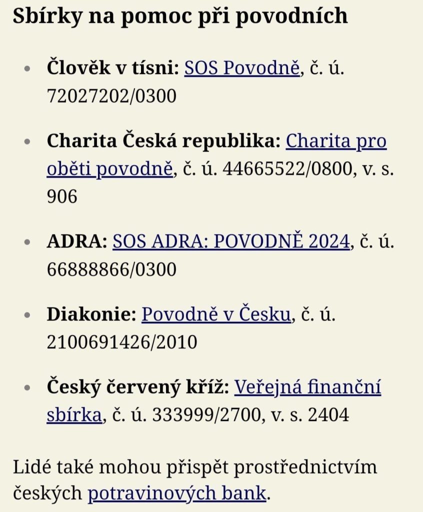 MATERIÁLNÍ SBÍRKA PRO OBCE POSTIŽENÉ POVODNÍ