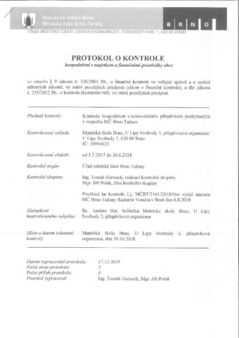 Kontroly na MŠ U Lípy Svobody