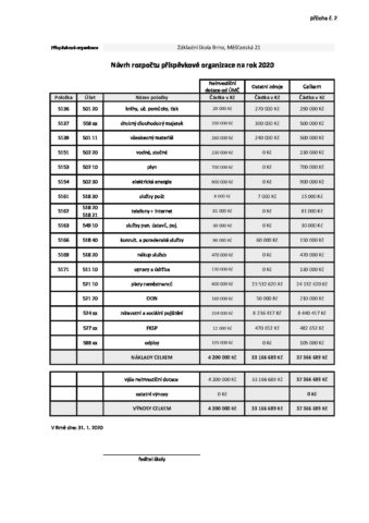 ZŠ Měšťanská – návrh rozpočtu 2020
