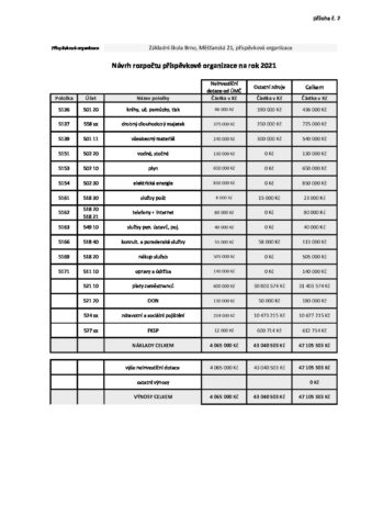 ZŠ Měšťanská – návrh rozpočtu 2021