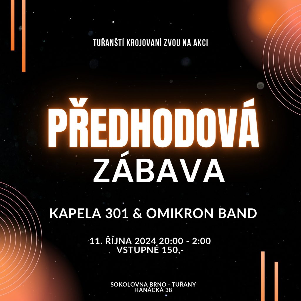 Tuřanští krojovaní vás srdečně zvou na Předhodovou zábavu, která se koná dne 11.10.2024 od 20 hod na Sokolovně v Tuřanech.