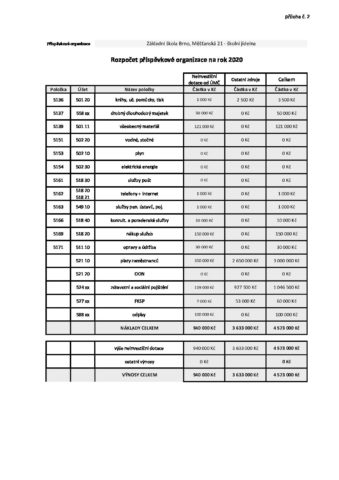 ZŠ Měšťanská – rozpočet 2020 školní jídelna