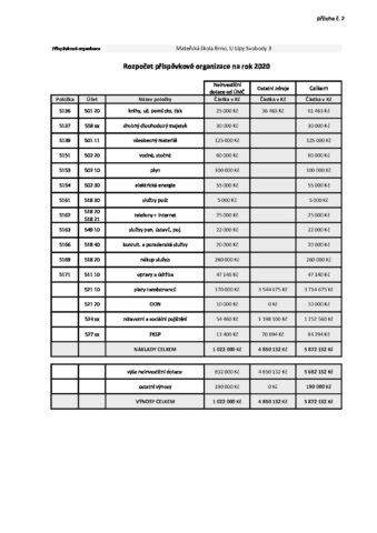 MŠ U Lípy – rozpočet 2020