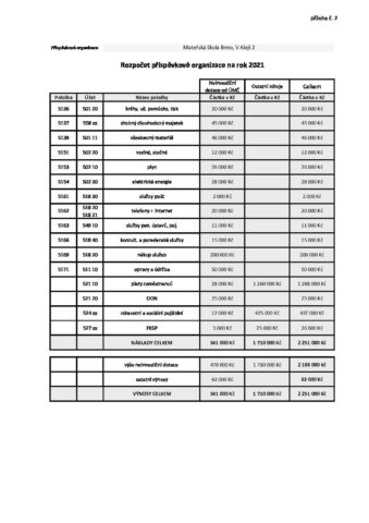 MŠ V Aleji – rozpocet 2021