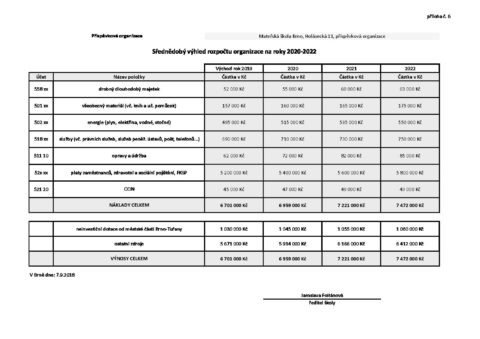 MŠ Holásecká – střednědobý výhled 20-22