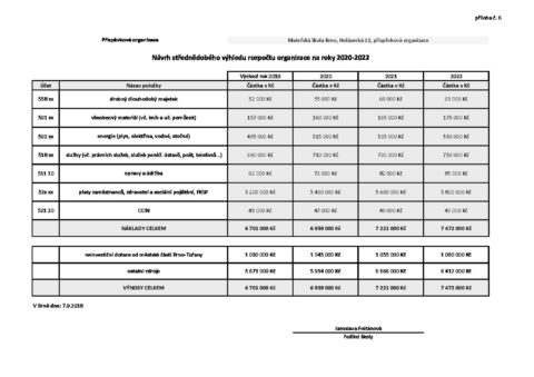 MŠ Holásecká – střednědobý výhled 20-22