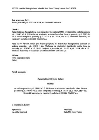 bod č. 11 – Směna pozemků p.č. 101-10 a 102-4, k.ú. Brněnské Ivanovice