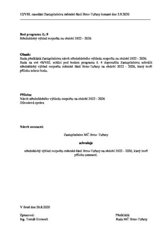 bod č. 9 – Střednědobý výhled rozpočtu na období 2022-2026