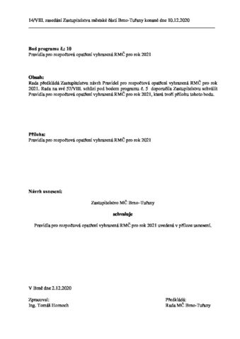 Bod č. 10 – Pravidla pro rozpočtová opatření vyhrazená RMČ