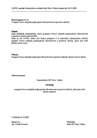 Bod č. 11 – Program Provoz subjektů podporující tělovýchovné a sportovní aktivity