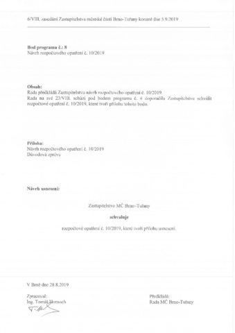 bod č. 8 – Návrh rozpočtového opatření č. 10_2019
