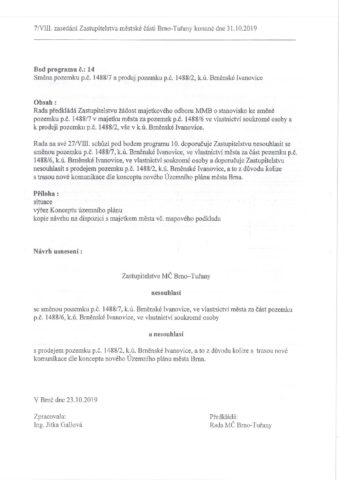 Bod č. 14 – Směna pozemku p.č. 1488_7 a prodej p.č. 1488_2 B.I