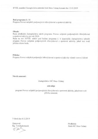 Bod č. 11 – Program Provoz subjektů podporujících tělovýchovné a sportovní aktivity