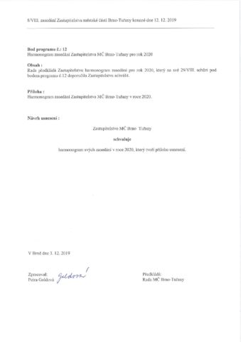 Bod č. 12 – Harmonogram zasedání ZMČ pro rok 2020