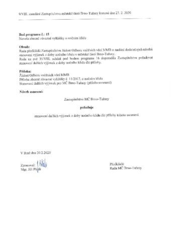 Bod č. 15 – Novela obecně závazné vyhlášky o nočním klidu