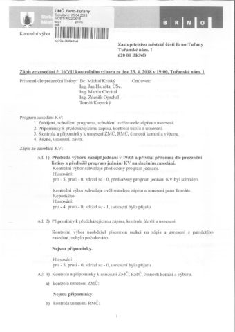 • Zápis 16 Kontrolní výbor