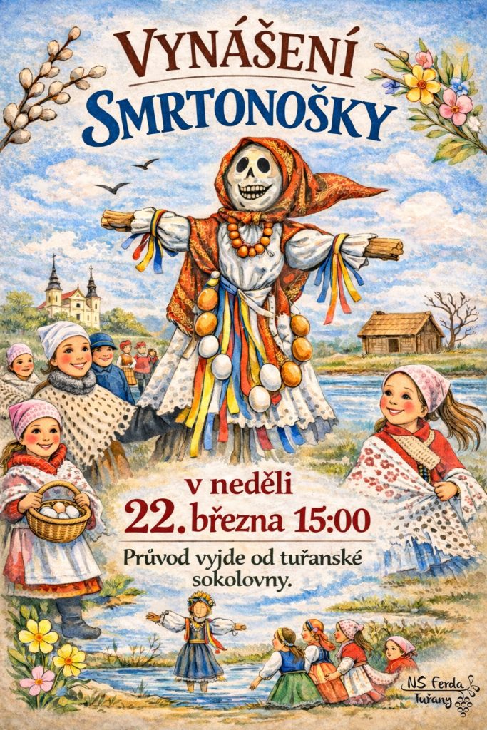 Národopisný soubor Ferdinanda Volka vás srdečně zve na vynášení Smrtonošky. Průvod půjde v 15 hod od Sokolovny 22.3.2026.