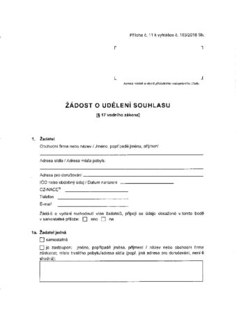 Žádost o udělení souhlasu (§17 vodního zákona)