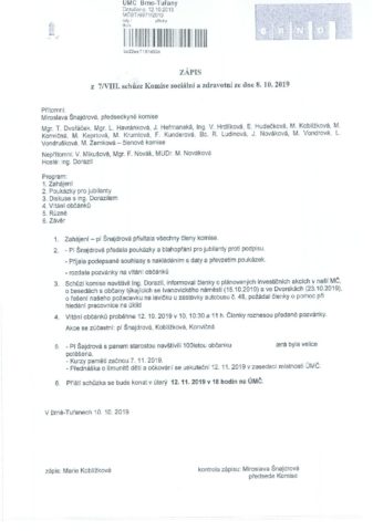 Zápis Komise socíální 7/VIII.