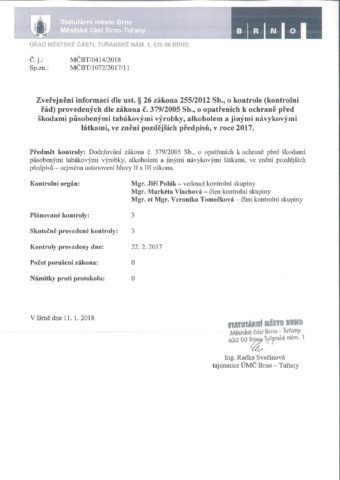 Přehled kontrol dle zák. č. 379/2005 Sb., za rok 2017